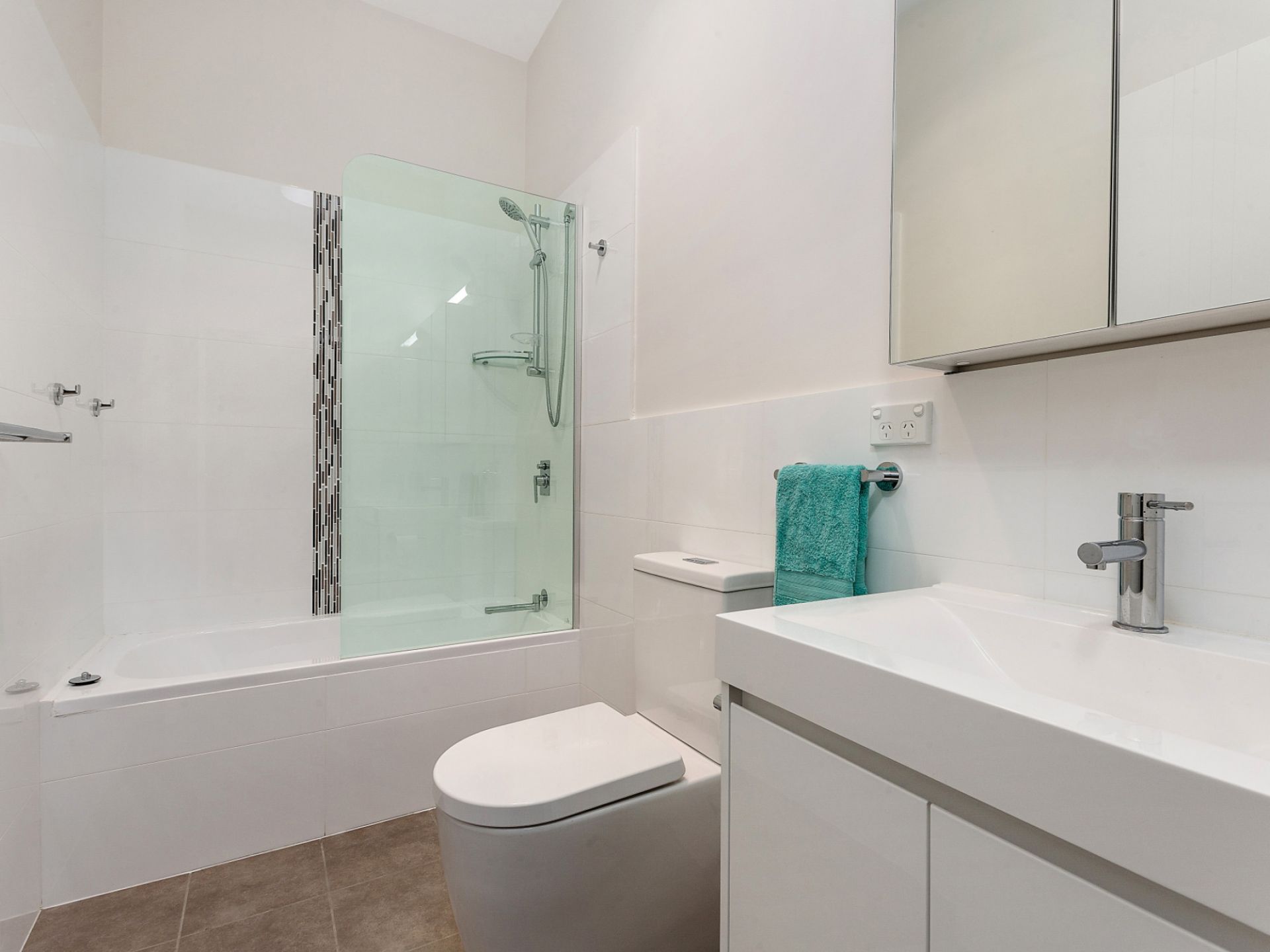 - Family bathroom with shower over bath