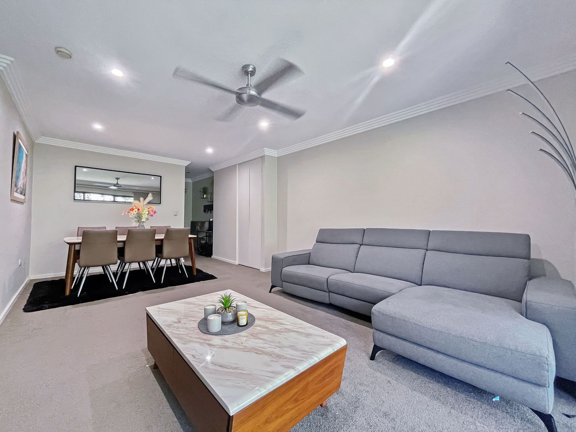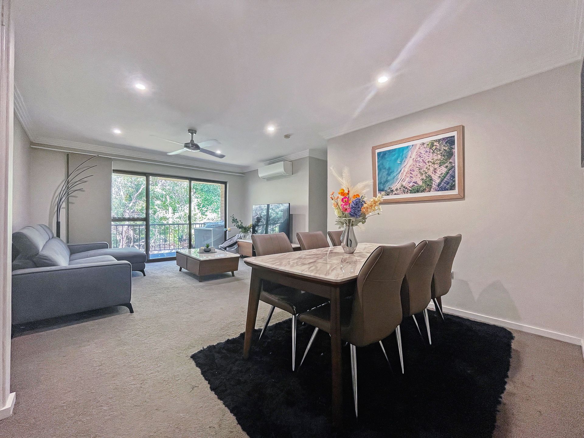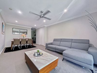 - Open and combined living and dining room that's super spacious flowing to a private, leafy outlook with ceiling fan and split system air con
