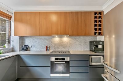 - Two double bedrooms of accommodation, both equipped with remote-controlled ceiling fans, roller blinds, with the main bedroom enjoying a private balcony with views over Meadowbank reserve