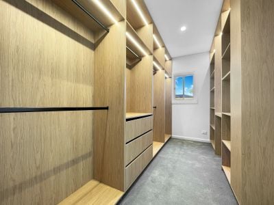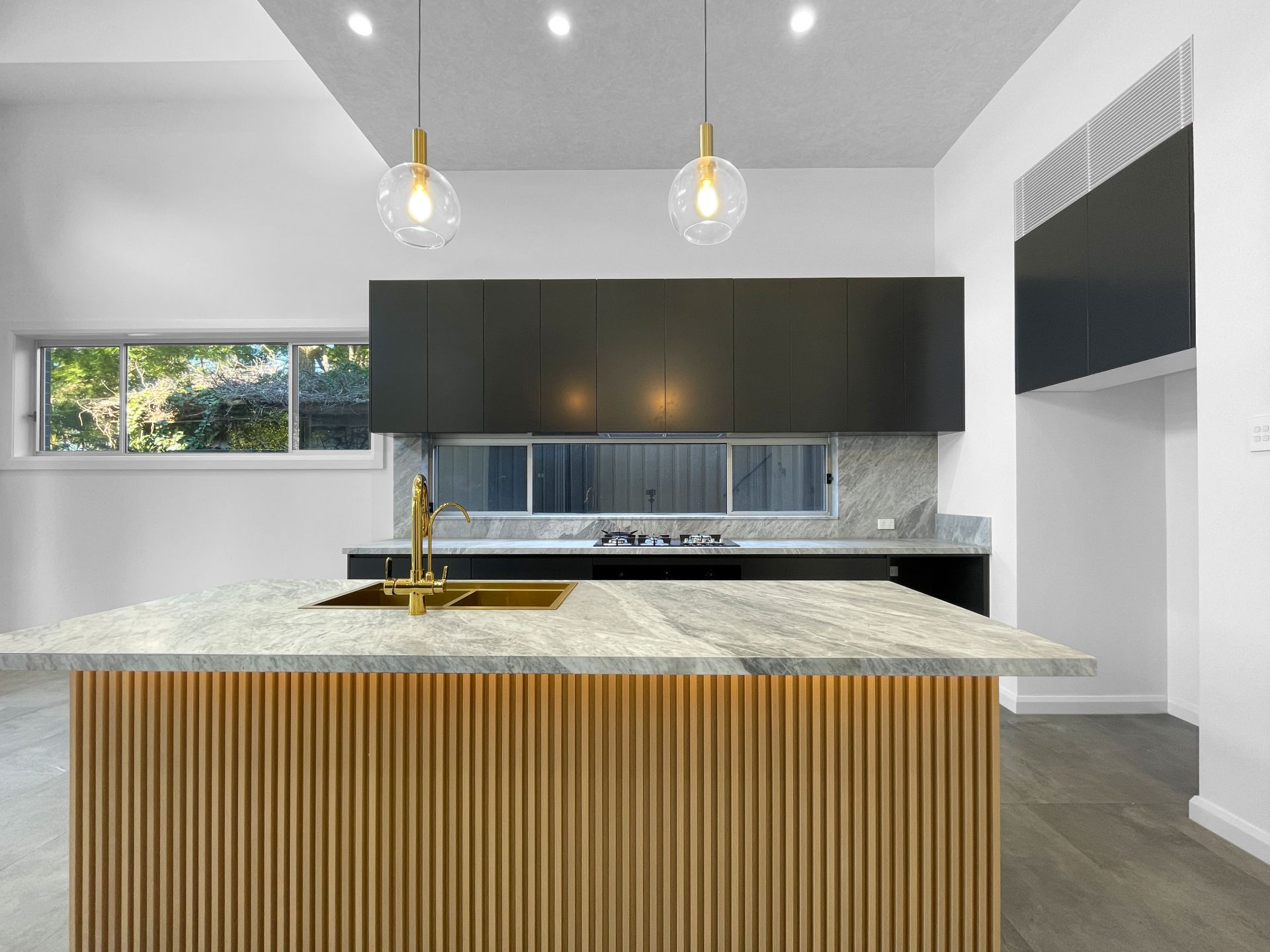 - Exquisite designer kitchen featuring an island bench with breakfast bar, premium ILVE cooking appliances and integrated dishwasher. The adjacent laundry room doubles as a walk-in pantry for bulk items and provides loads of bench space