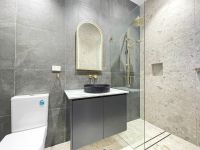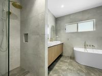 - High-end family bathrooms service both the ground and upper floors with premium brass fittings, floor-to-ceiling tiles and an indulgent free-standing bath