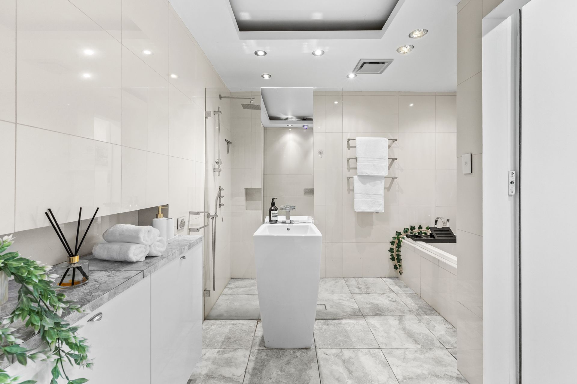 - Luxurious bathrooms with floor-to-ceiling tiling and premium fixtures