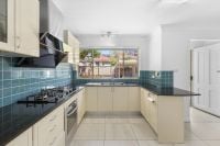 - Contemporary kitchen with breakfast bar and stone benchtops
